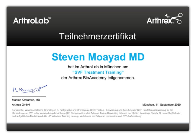 Bei dieser Therapie werden dem Patienten körpereigene Stammzellen aus dem Fettgewebe entnommen. Die sogenannten mesenchymalen Stammzellen werden unter lokaler Betäubung vorwiegend an Bauch und Gesäß gewonnen. Danach wird das Fett aufbereitet und gefiltert bis lediglich die Stammzellen übrig bleiben. Diese werden in das betroffene Gelenk injiziert. Der Erfolg der Therapie beruht auf der bioregenerativen Wirkung der Stammzellen auf Sehnen, Muskel, Bänder und Knorpel.